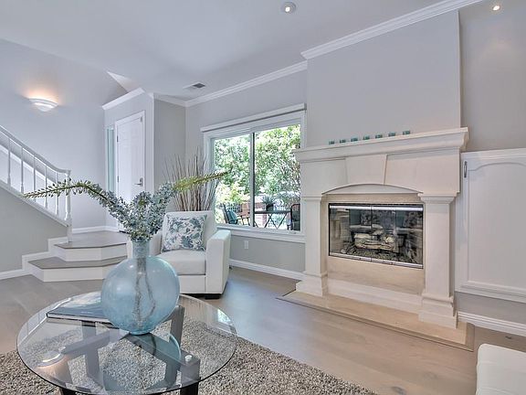 Beautiful townhouse style home in Mountain View's West Court community. Thoughtfully arranged open floor plan features high ceilings, 2 bedrooms and 2.5 bathrooms. Kitchen features granite countertops and stainless appliances. Gas oven/range with exhaust hood. Large, en-suite master with 2 closets. Dual sinks and large soaking tub in master. Raised panel doors, brand new paint and fresh carpet. Gorgeous laminate wood flooring. 4 different patio/balcony areas, including one off each bedroom. Ceiling fan, skylight, and recessed lighting. Air conditioning. Lots of natural light. Close to freeways (85, 101, Central Expwy), Castro street dining and civic center, Google, and CalTrain. Attached, 1 car garage and dedicated 1 car carport. HOA dues: $365 per month. Cool off and relax in the pool and spa. (Please note that the HOA is painting the exterior of the entire complex over the next 2-3 months. Orange spray paint on exterior represents wood that's been marked for repair/replacement.)
