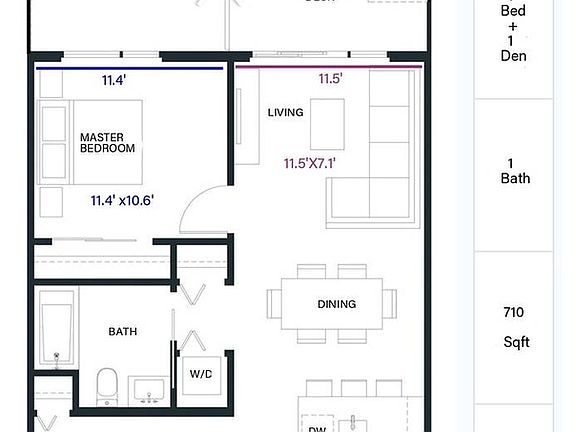 - Total interior livable area: 710 sqft