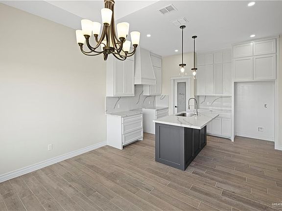 New home by AJ1 construction 3-bed, 2-bath gem sprawling across 8,260 sq.ft lot. Energy efficiency is achieved by providing this home with foam insulation in the walls and the ceiling, including an insulated garage. The home has a beautiful stone/stucco facade and has stucco all around the home to provide an elegant look. The lighting package throughout was designed by Illuminations professional lighting team. The home will come with landscape/ irrigation for the grass/tree/plants to also be included. custom cabinetry and built-ins. The principle bedroom has a large closet and the ensuite has a separate bath tub and shower that creates a luxurious vibe. Across the street lies IDEA Academy, an award-winning Charter school. Commuting is a breeze with highway access to McAllen or Harlingen. The subdivision's entry is a preview of the elegance within – a manicured lawn framing your journey.