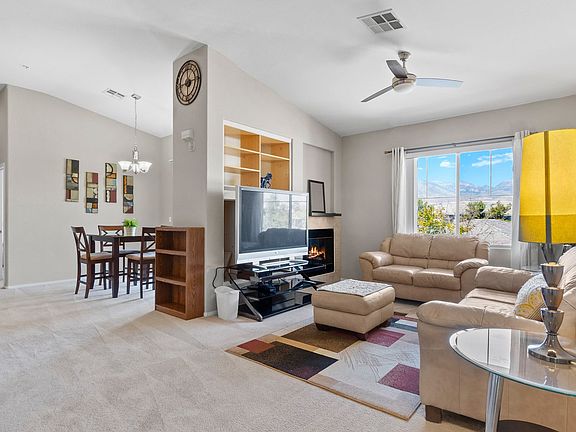 Welcome to this beautifully furnished 2nd floor corner unit in a gated Summerlin community. This 2 bedroom, 2 bathroom home offers a spacious living area with a cozy fireplace, perfect for relaxing or entertaining guests. The kitchen features tile countertops, a breakfast bar, and all appliances included. The primary bedroom boasts balcony access, a double vanity sink, separate shower, and tub. Enjoy the convenience of a washer/dryer in the unit and a covered balcony with mountain views. Residents have access to a sparkling community pool, clubhouse, and are just minutes away from Summerlin PKWY. Don't miss out on this fantastic opportunity to live in a prime location with all the amenities you need for comfortable living.*No Pets.