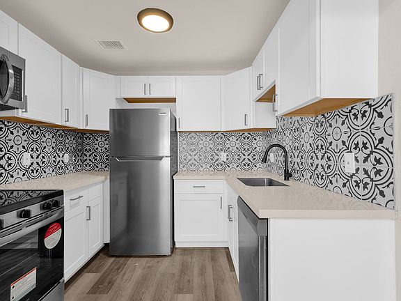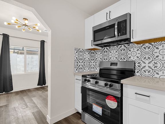 Private fenced in yardLarge walk in closetQuartz countertopsStainless appliancesCustom kitchen backsplashBeautiful accent wall