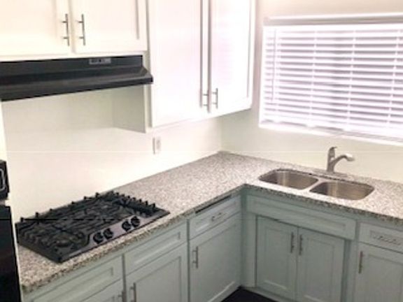 This unit has beautiful wood floors in the living/dining room area. The unit also has custom crown/floor moulding throughout living/dining room, 6 panel doors, custom two tone paint and smooth ceilings. The bathroom has a new vanity, toilet, light fixture and tile floor. The kitchen comes with granite counter and new cook top. Beautiful shake style cabinet doors thru out. There is a window A/C unit that keeps the apartment cool during the summer. Laundry room on site.Close to Trader Joe's and shopping. Easy access to the freeway.*Rent quoted is based on the Resident paying their rent on the first of each month and receiving the Good Resident Rent Credit.