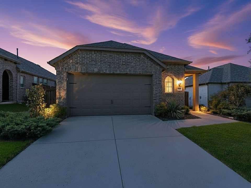 The exterior features an elegant brick elevation, mature landscaping, & brick-covered front entry. Step inside to soft paint, wood-like flooring in common areas, & 5-panel doors throughout. The kitchen showcases pristine cabinetry, granite countertops, a large eat-in island, & stainless steel refrigerator! Appliances to include a gas cooktop & refrigerator that stays. You will love the ambiance created by the under-cabinet lighting and enjoy the filtered water at the kitchen sink! Relax in the cozy living room or have fun entertaining! Secondary bedroom wing features 2 closets, 2 bedrooms & full bath. Primary suite is privately located in the back of the home, featuring a luxurious en-suite bath with a soaking tub & oversized shower offering mesmerizing views of your very own relaxing backyard. Utility room with washer & dryer connections and hanging rack are in a private room adjacent to additional costs next to the enormous 2 car garage where you will have your full water softener system and insulated garage door.