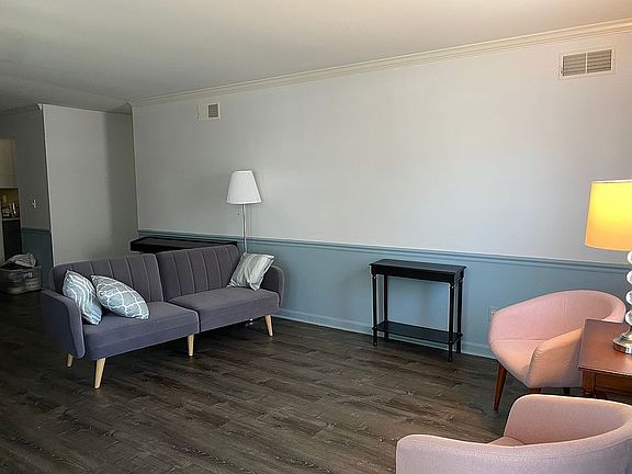 Primary bedroom has en suite bath with walk-in shower featuring glass doors. Second bedroom is very spacious. Both offer ample closet space.
