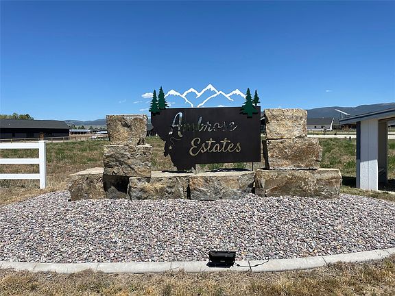 Ambrose Estates. Come build your Montana dream home on one of the last remaining lots in this highly sought after subdivison and in an area of beautiful custom homes. Level 1.34 acre building lot with Power, high production Well and Septic approved. Panaoramic mountain views, paved roads and BRID gravity flow irrigation water. Enjoy your daily walks around the Ambrose Creek Community Park offering more than 1/2 mile of walking trails, Ballparks, open fields, Playground and Tennis courts.