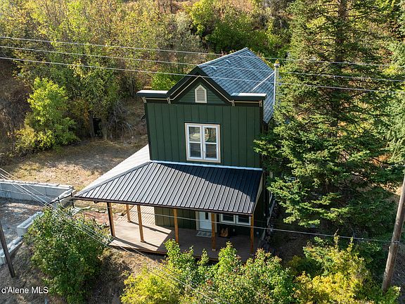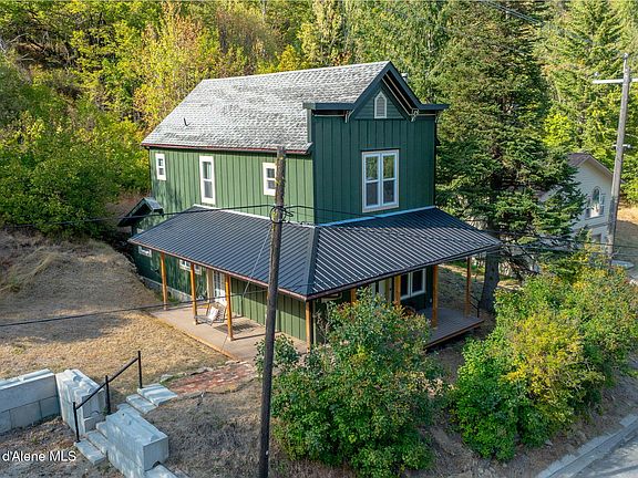 Completely refinished home on 0.36 acres in Wardner, comes fully furnished! Just 2 miles from Silver Mountain & 25 from Lookout, it's a perfect place to enjoy the 4 seasons! This historic 1901 home has been brought back to life w/a full remodel in '24 down to the studs. Everything is new including electrical, plumbing, insulation, windows, drywall, flooring, siding, & roof just to name a few. Main floor on this 1604 SF home features 10'+ ceilings w/the charm of original exposed wooden walls and beams, cozy front sitting room w/wood stove, great room, enormous kitchen w/custom solid wood cabinets & new appliances, full bath & laundry/mud room. Upstairs includes the primary bed w/3/4 bath, along w/2 other beds & full bath. Exterior of home has a gorgeous wrap around covered porch w/two entrances, & wood storage bunker. Parking has room for 2 full size vehicles, with room to add a carport covering. Enjoy living here year round or use it as your vacation/short term rental investment home!
