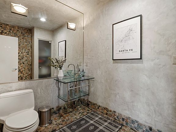 The open floor plan features a modern kitchen, sleek concrete floors with in-floor radiant heat, and new evaporative cooler. Step out from the living area onto a spacious deck to enjoy outdoor living and mountain views. Upstairs, the lofted bedroom offers generous closet space, a ¾ bath with a steam shower, and stackable laundry. Don’t miss this unique opportunity to own a stylish and light-filled home in one of Santa Fe’s most desirable neighborhoods.