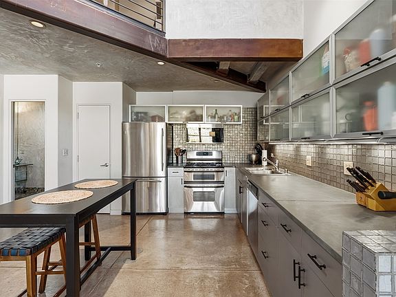 Contemporary live/work condo located in the highly sought-after South Capitol neighborhood—just a short walk to the Santa Fe Plaza and less than a mile from the Railyard District. Enjoy easy access to Whole Foods, Trader Joe’s, Natural Grocers, popular restaurants, and a variety of local amenities. This two-level, second-floor residence offers 1 bedroom and 2 baths (1 full, 1 half) and is quietly tucked away at the back of the complex for added privacy. Expansive windows frame views of the Sangre de Cristo Mountains, while clerestory windows and soaring 17’ ceilings fill the space with natural light.