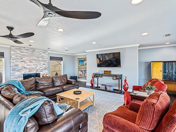 This North-Facing Mt. Riante Home features an Open Floor Plan with Walls of Glass, over 3,000sf of Well-Designed Living Space situated on 2.5 Acres with a 30x40 Shop! The Living, Dining and Kitchen Flow Seamlessly Together allowing the Chef in your Family to Take Part in the Fun! The Kitchen features a Huge Island - Perfect for Game Days, or Cooking Up a Big Breakfast with the Kiddos! It is equipped with a Gas Range, Wall Ovens and a Separate Wine/Coffee Bar. The Massive Primary Suite includes a Site-Built Stone Fireplace, Sitting Area and Beautiful EnSuite! The 1st Guest Suite also features an EnSuite while the 2nd Guest Suite has Enormous Views with the 3rd Full Bathroom located Right Across the Hall. The Home Office boasts Big City Views and is Conveniently located near the Powder Bath. Fur Baby Pawrents will LOVE the Laundry Room with its Built-In Pet Shower! The Covered Back Patio is the Absolute Show Stopper and where you will want to Spend EVERY Free Moment taking in the Views, Enjoying the Breeze and Gathering with your People! Store ALL of your toys in the 30x40 Shop Building! Call Today