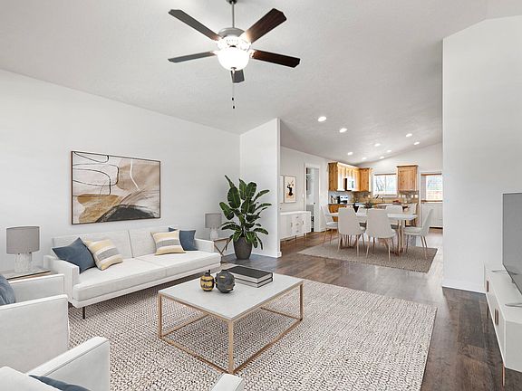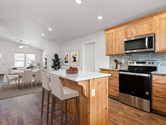 How much fun could you have living in this neighborhood? This corner lot home is on a cul-de-sac, bordered in back by a paved walking trail with the creek beyond that. The skate park, adventure bike park, pickleball, basketball, volleyball, bocce ball courts, playground and terrific green spaces are all within a block! This 3 bedroom, 2 bath home is like new and lives larger than the square footage! It features vaulted ceilings, walk in closet in the Owner's Suite, solid stone countertops, S/S appliances, laundry room with utility sink and a finished garage. The open floor plan allows for easy and comfortable entertaining. Enjoy warm evenings on the covered front porch, create a comfortable outdoor living space in the back or side yard or just take off to the parks!