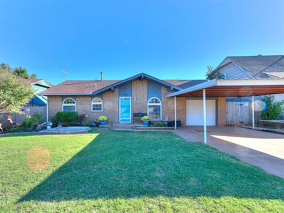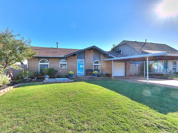 $10,000 price improvement! Welcome to this beautiful, rare well-cared-for home in desirable Moore School District, owner has lived in this home for 45 plus years! This charming residence features 3 bedrooms, 2 living areas, 1.5 bathrooms, and a 2-car carport. The front yard is beautifully landscaped, and the backyard boasts a large, covered patio and stunning landscaping along with a convenient storm shelter in the front yard. Inside, you'll find upgraded vinyl windows, newer vinyl plank flooring, and a chef's kitchen with a large pantry, center island, granite countertops, and stainless-steel appliances, including the five-burner gas stove with a grill/griddle. Two bedrooms have ceiling fans and new blinds throughout, while the second living area offers two ceiling fans and so big windows, to enjoy the gardens in the backyard, the backyard is enclosed by a newer stockade fence, providing privacy and security.