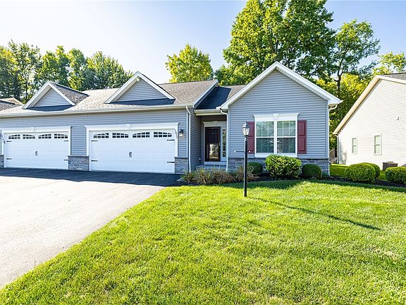 WELCOME THE THE VILLAS AT CAMBRIDGE COURT A 55+ COMMUNITY ~ THIS 2014 BLT RANCH TOWNHOME IS 1494SF WITH 3 BEDROOMS & 2 FULL BATHS ~ CONVENIENT 1ST FLR LAUNDRY RM & A 2 CAR GARAGE ~ FULL BASEMENT WITH AN EPOXY FLOOR ~ KITCHEN HAS GRANITE COUNTERS & BREAKFAST BAR ~ RICH ESPRESSO CABINETS & TILE BACKSPLASH ~ SPACIOUS PANTRY & STAINLESS APPLIANCES. LIVING RM WALL MOUNT TV TO REMAIN ~ BEAUTIFUL GAS FIREPLACE & LAYERED CEILING ~ HDWD FLR. ENJOY SITTING AT THE STONE PATIO & WOODED YARD. 2ND BEDRM CARPET HAS BEEN REMOVED. HOA IS JUST $185/MONTH AND COVERS EXT MAINTENANCE, LAWN CARE, LANDSCAPING, DRIVEWAY SNOW REMOVAL & REFUSE. SHOWINGS BY APPT ~ DELAYED NEGOTIATIONS SAT 10/11 @ 3PM