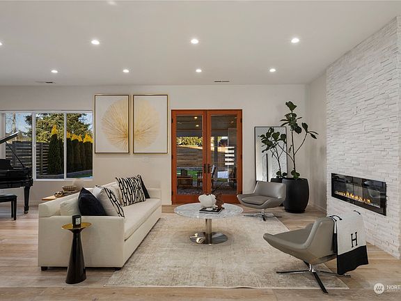 Stunning 2,660 SF, 4 Bedroom 3 Bathroom home in Renton’s coveted Highlands neighborhood. Fully reimagined with a high-end renovation and addition, it blends luxury with modern elegance. Soaring ceilings enhance the airy, open layout, designed for both comfort and style. The primary suite is a spa-like retreat with a beautifully designed ensuite featuring a soaking tub, walk-in shower, and dual vanities. A chef’s kitchen boasts premium finishes and top-tier appliances. Step outside to an expansive covered patio with a fireplace, ideal for year-round entertaining. A detached studio offers a perfect home office, gym, or creative space. Minutes from The Landing, parks, shops, and dining. Sale includes additional Parcel:2987400035, 28K Sq Ft.