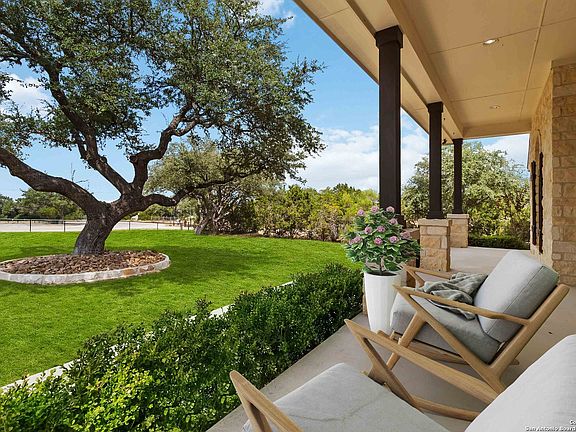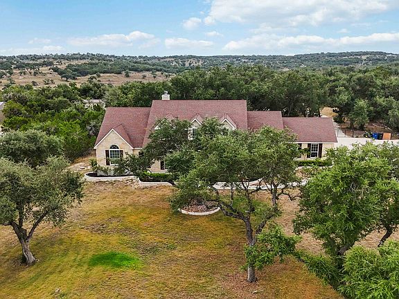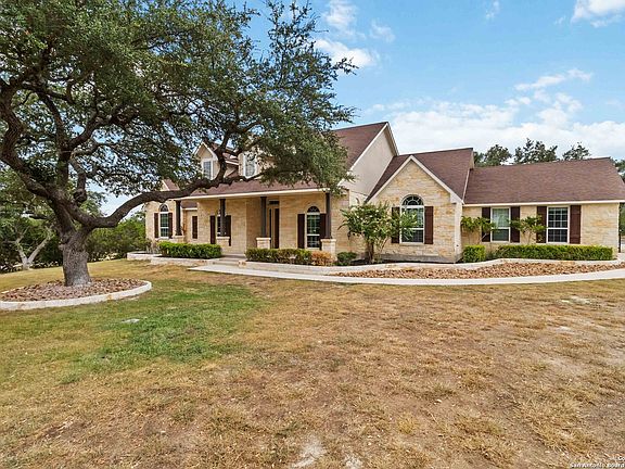 Nestled in the rolling hills of the Texas Hill Country, this 5.15-acre majestic oak tree studded estate is the desirable gated community of Rebecca Creek offering the perfect blend of country charm and refined living-all just under an hour from downtown San Antonio. As you enter through the electric gates and fully fenced grounds, you're welcomed into a private oasis designed for both equestrian enthusiasts and those who love to entertain. Horse lovers will appreciate the two-stall barn with tack room, corrals, and wide-open, cleared acreage for roaming. The backyard retreat is nothing short of extraordinary. A sparkling in-ground pool with a cascading waterfall sets a serene tone, while the expansive arbor and all-stone outdoor fireplace create a magical space for evenings under the stars. The stone-accented Hill Country-style residence greets you with a covered front porch spanning the length of the home. Inside, an open-concept design flows seamlessly across designer tile flooring, creating a bright and inviting atmosphere. The spacious living room, anchored by a cozy fireplace and built-in shelving, transitions effortlessly into the chef's kitchen featuring 42" cabinetry, stainless steel appliances, a breakfast bar, and walk-in pantry. The primary suite is a true retreat, offering a spa-like bath with a soaking tub and walk-in shower. Additional accommodations include a private guest suite with full bath, plus two secondary bedrooms sharing a Jack-and-Jill bath. A dedicated study, set behind French doors at the entry, provides a quiet space with views of the sprawling front landscape. This Canyon Lake estate offers the rare opportunity to embrace the best of Hill Country living-space for your horses, a backyard built for gatherings, and a beautifully designed home that balances rustic charm with modern comfort.