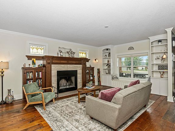 This stunning 2-story, 5-bedroom, 4-bath home with 4,319 sq ft of finish blends timeless charm with modern updates in the desirable Cedar Pointe Golf Course Neighborhood (no HOA). Custom craftsmanship is showcased throughout, featuring 100+ year reclaimed barnwood flooring, farmhouse doors, handmade built-ins, antique English-stained glass windows, Spanish tile backsplash, and custom craftsman fireplace cabinets. A dedicated main-level office, sunroom, and finished attic with 374 sq ft of finished space add versatile living spaces. Recently renovated areas include the kitchen, basement, and family room. Enjoy the full front porch overlooking golf course sunsets or entertain in the large fenced backyard with a two-tiered deck, fire pit, and views of the new Ledges Elementary. A custom-built little library delights neighbors, while a large shed/second garage offers space for a camper, boat, or RV. This home is designed for sustainability with a new geothermal system, solar panels producing 23.5 mWh/year (saving on average $500+ monthly), and a Level 2 EV charger. Solar powers the home and cars, while geothermal regulates comfort efficiently. The location offers small-town charm with easy access: 15 minutes to ISU, 30 to Ankeny, 35 to West Des Moines. Boone County's recreation abounds with Ledges State Park, High Trestle Trail, Seven Oaks Recreation, the Iowa Arboretum, and more. A one-of-a-kind property combining beauty, efficiency, and community.