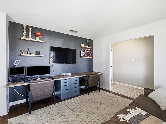 Fantastic home in a great location! Beautiful hardwood floors in the main living areas and tile in the entry, hallway, kitchen, and bathrooms. Open floor plan features an updated kitchen with quartz countertops, breakfast area, and a spacious family room overlooking the backyard. Family room includes a beautiful fireplace for added charm. Additional features include board-on-board fencing, full sprinkler system, and an oversized rear-entry garage. Located on a quiet cul-de-sac with Tejas Park and playground at the end of the street. HVAC replaced in 2021 and water heater replaced in 2024.