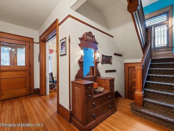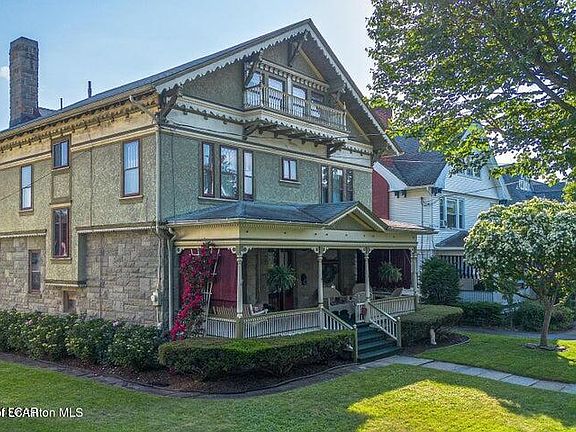 Step into timeless elegance with this stunning 5-bedroom, 2-bath home located in Scranton's highly sought-after Greenridge neighborhood, right on picturesque Sunset Street. This unique Swiss Chalet-inspired residence features solid grey stone and stucco construction, accented by rich wood trim and a charming covered front porch with classic awnings--truly the kind of home you imagine in a movie, Spanning over 3,400 square feet of finished living space across three floors, this residence showcases unmatched craftsmanship throughout. From intricate woodwork and gleaming hardwood floors to pocket doors, built-ins, and two tiled fireplaces, every detail radiates character and charm. The first floor includes a grand foyer, a spacious living room, family room, formal dining room, kitchen, butler's pantry, and a convenient half bath. A beautiful back staircase adds to the home's historic appeal. Upstairs, the second floor offers four generously sized bedrooms and a full bathroom. The third floor provides a fifth bedroom, abundant storage, and a large walk-in linen/hall closet. The stone cellar-style basement features a laundry area and ample additional storage. Situated on a large back and side yard in one of Scranton's most refined neighborhoods, this architectural gem is truly a rare find. Don't miss the opportunity to own this Greenridge treasure filled with warmth, history, and timeless appeal.