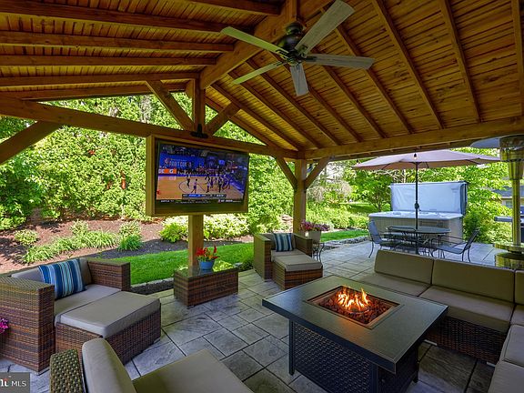 Welcome to The Highland of Hampdens and this Spectacular almost 4,000 sqft traditional home with an open floor plan. You'll find custom built additions that were designed by the current owner, professional landscapers and builders. Beginning with the front of the home, you'll see a new dryvit exterior, windows, landscaping and a very brand new roof. Out back is a wonderful area to relax and entertain with a new stamped concrete patio, cedar A-Framed outdoor room with built in for your TV, a ceiling fan and gas firepit. The gas grill and firepit have an underground gas line to them as well. Entering the home you'll see natural light throughout due to all the floor to ceiling windows. The two story foyer has hardwood floors along with the living and dining rooms. The kitchen has a huge island, plenty of counter space, a built in pantry and is open to the great room. There you'll find a brick gas fireplace and custom built surround sound. All 4 bedrooms plus the bonus room are very large. All bathrooms have been renovated and the master bathroom has a huge walk in shower with rain shower jets, and electronic temp control. The tile floor through out the home is travertine. The finished basement is one of a kind. It's custom bar was built with a walnut live edge counter top, custom stone work and railroad tie foot rest around it. The entertainment area boasts custom stonework and staircase, recessed lighting, tray ceiling, moisture back vinyl flooring and more. This is a Geothermal home w/system installed in 2015. The list of all upgrades is attached to the disclosure as well.