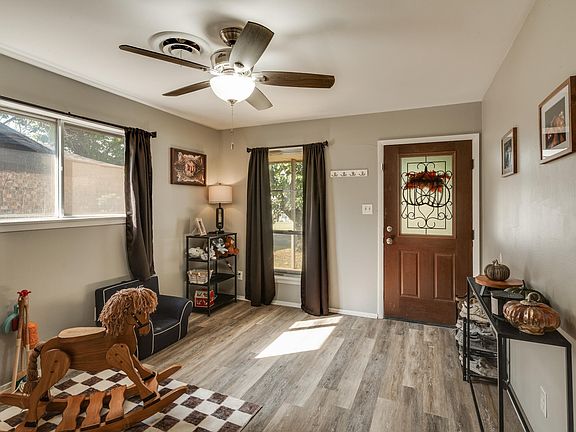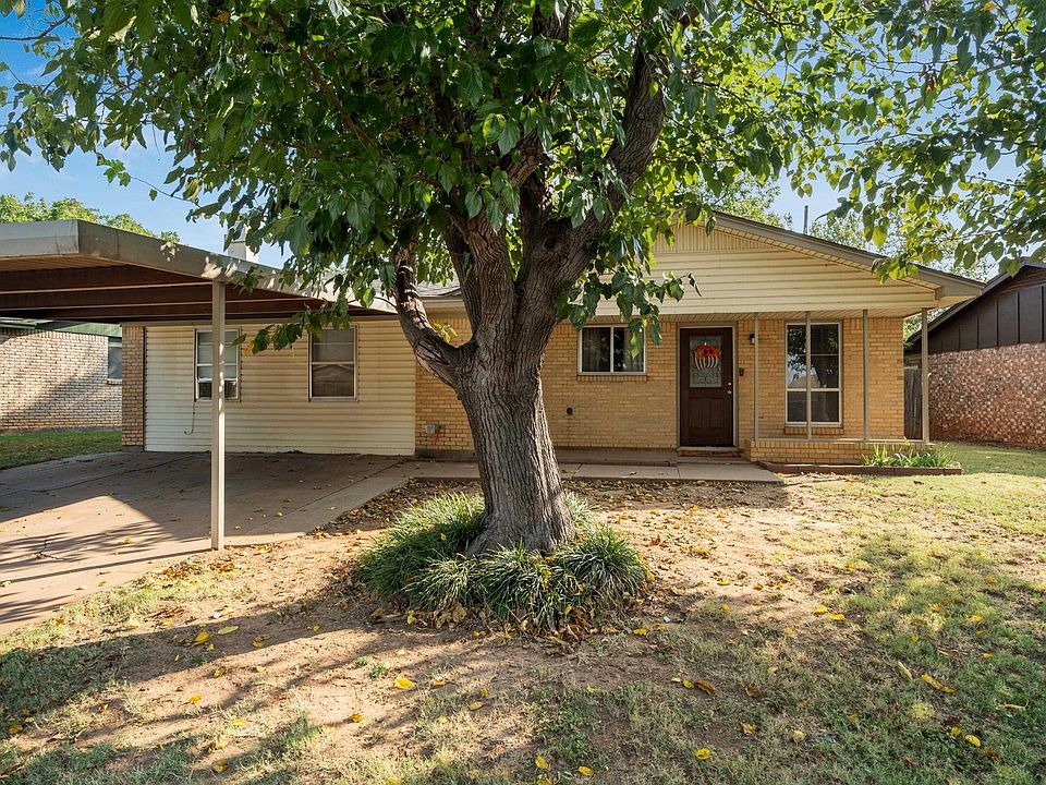 Over 1500 sq ft with 3 bedrooms, 1.5 baths, large den with wood-burning fireplace, and updated kitchen with granite, glass tile backsplash, gas cooktop, stainless dishwasher, and built-in oven. Vinyl wood floors throughout living areas. Flexible front room for dining or office. Updated hall bath, fenced backyard with covered patio, 2-car carport. Blocks from Kidwell Elementary, easy commute to Sheppard AFB & Wichita Falls.