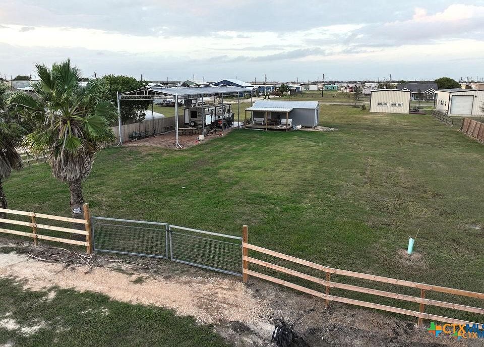 This unique coastal property in Seadrift, Texas, sits on five improved lots totaling approximately 0.41 acres and now features a recent price reduction along with the added value of an included RV. Designed for RV enthusiasts, weekenders, and fishing fans, the property has been raised and improved with dirt and gravel and includes an oversized RV cover with multiple RV hookups, along with a dual-gated driveway that makes access easy for RVs, boats, and larger vehicles. The converted outbuilding offers a comfortable cabin-style space with a covered front porch, built-in bunk beds, a bathroom with a shower, and a mini-split system for heating and cooling, and the cabin will remain furnished. The seller has also upgraded the washer and dryer area located behind the roll-up door on the opposite side of the outbuilding, which includes water hookups and additional storage space for lawn equipment and gear. Whether you are looking for a coastal weekend retreat or a convenient base for your fishing and outdoor adventures, this property is fully equipped and ready to enjoy from day one. The RV on-site is now included with the sale.