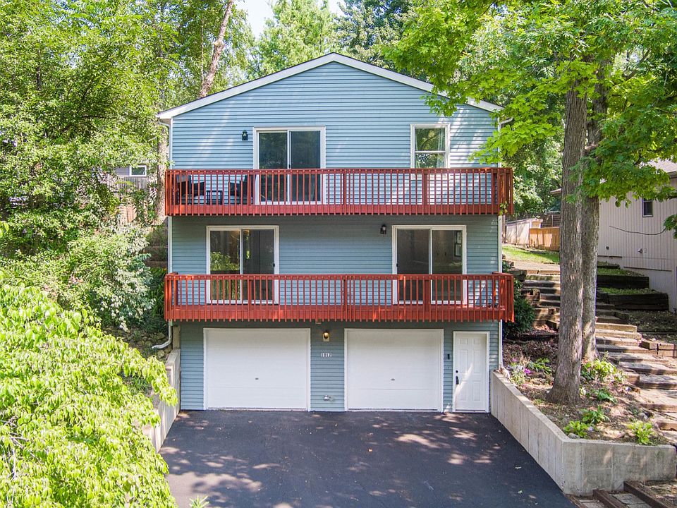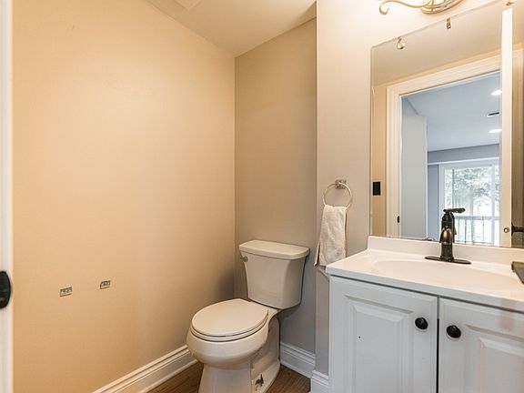 Upstairs, you'll find two full bathrooms: the primary suite includes a private bath with a stand-up shower and a private walkout balcony. The hallway bathroom offers a full tub/shower combination shared by the additional bedroom. A half bath on the lower level adds extra practicality for guests.