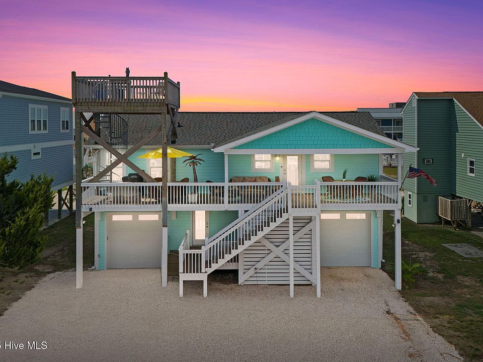 Stunning 3rd row, 3 BR, 2 BA split BR design on the West End! 2 BRs have ocean views! Impeccably cared for & move-in ready! Many updates: Fortified roof, windows, doors, patio doors, floors, ceilings, lighting, ceiling fans, Hardie plank siding & window treatments. The spacious garage offers 9ft doors w/ entertaining space, outdoor shower & integrated storage room. Crows nest boasts 360 deg ocean & marsh views! Steps from beach accesses! Gleaming kitchen with new Acacia wood kitchen counters & backsplash, finished w/ imported sea glass door pulls. Refreshed driveway & walkway stone add to the curb appeal. Spend time relaxing in the hot tub which is on its own private deck! This home blends style, comfort & function. Spacious entertaining porches to enjoy both the ocean & marsh views! This home is a must see!