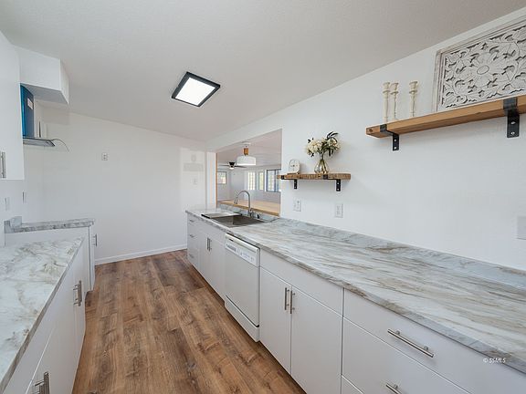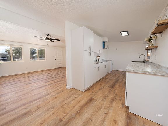Adorable 2,400sf Home with 3 Bedrooms and a Office! Beautifully remodeled 2,400 sq ft home, situated on a double lot. Step inside and discover that there is brand new flooring throughout, and that the kitchen and baths have been tastefully upgraded. This spacious home boasts two inviting living rooms, including one truly oversized space ideal for entertaining guests or relaxing with family. The modern kitchen hosts a breakfast bar, new deep sink, updated countertops, brand new cabinets and a sleek hoodvent. The thoughtful layout includes two generous guest bedrooms and a versatile office/den. Indoor laundry closet. Retreat to the main suite, where you'll find an updated bathroom with a dual sink vanity, walk-in shower and an impressively large walk-in closet. Large backyard with a covered patio. Evaporative cooling. With every detail carefully considered, this Ridgecrest Heights home is move in ready! Schedule your private showing today and discover the endless possibilities that await!