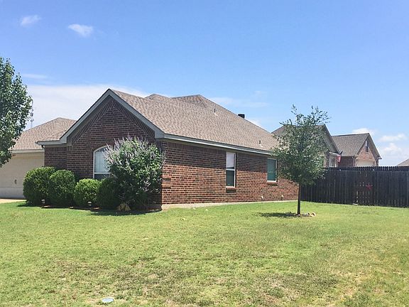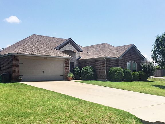 Dramatic views from this neat house on the hill, you can see for miles. Fort Worth side of Granbury about 1mile behind HEB. Open concept living with recently replaced wood floors, baseboards, and paint throughout most main areas of the home. Home features split bedrooms, wood burning fireplace, large covered patio. Master bedroom has deep soaking tub and separate shower. Oversized corner lot features fenced backyard and includes firepit and shed. HOA allows for behind fence boat-RV parking and this home has 12ft gate next to the garage and stone pavers for parking. Corner lot is nearly quarter acre. Meticulous owners have kept the home in great condition. Enjoy awesome living in relaxing Granbury.