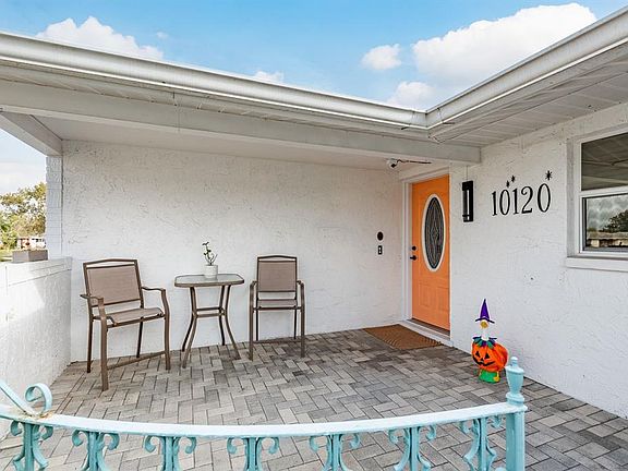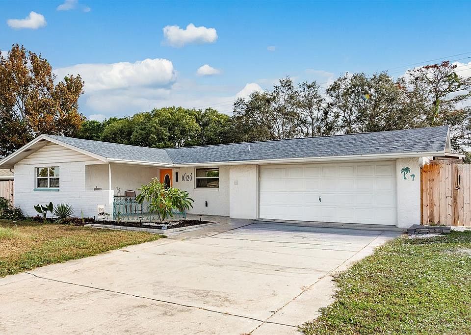Welcome to 10120 Willow Drive in the well-established Jasmine Lakes community of Port Richey. This thoughtfully maintained 2-bedroom, 2-bath, 2-car-garage home blends comfort, convenience, and quality upgrades—ready for its next owner to enjoy from day one. Major improvements have already been handled for you, including a new shingle roof (2022), a new HVAC system with ductwork (2024), new gutters (2024), and a new fence—plus added attic insulation for efficiency. Step inside to discover a bright, open layout featuring a welcoming living and dining space, fresh neutral paint tones, and classic terrazzo flooring revealed in select rooms for timeless mid-century appeal. The kitchen has been refreshed with updated lighting, hardware, copper backsplash, and a new countertop breakfast bar, offering plenty of workspace for everyday cooking or entertaining. Both bedrooms are well proportioned, and the primary suite includes a private bath and generous closet space. A sliding glass door leads to an enclosed Florida room that extends your living area year-round. Beyond that, the covered patio and spacious fenced backyard create the perfect backdrop for morning coffee, weekend barbecues, or simply relaxing under the shade of mature trees. Practical details enhance peace of mind—public water and sewer, a two-car garage with laundry area, and an oversized driveway for extra parking. Located in FEMA Zone X with no HOA or deed restrictions, this home invites flexibility for full-time living, a seasonal retreat, or an investment opportunity. Conveniently close to shopping, dining, medical facilities, and top recreation along the beautiful Gulf of America, you’re just a short drive from Tarpon Springs Sponge Docks, Hudson Beach, and the Ridge Road extension offering direct access to Tampa International Airport.