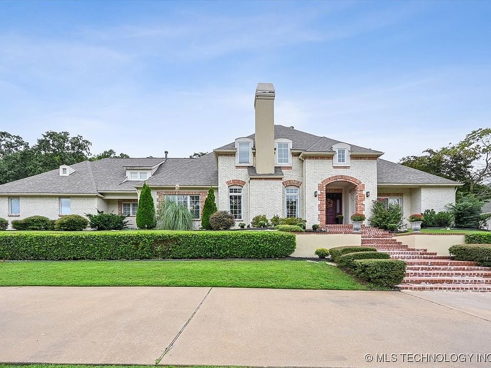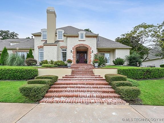 Gated, boutique neighborhood of Windsor Woods. Majestic brick home with circular drive & grand entry. This 5 bedroom / 4.5 bath home offers 3 living areas, 2 fireplaces, and executive office. Large updated chef's kitchen with island & chef prep area, new state-of-art refrigerator, pantry. Open floor plan, ideal for entertaining. Additional game room with an abundance of storage. New roof and tankless hot water heater. Primary ensuite has new bath with soaking tub and separate shower. Covered outdoor area overlooks pool with decorative fence and separate playground for children. Private setting on a half acre (m/l) in Jenks Southeast.