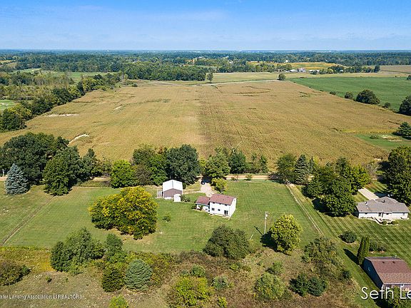 Beautiful country setting located just outside of Portland less than 1 mile from Willow Wood Golf Club. Convenient access to I-96 and only minutes away from the Portland State Game Area and The Grand River. This property offers over five acres of land and has a large fenced in yard; great for kids and animals to safely enjoy. Fresh paint through much of the home and new floors make this clean and move-in ready. You'll find four bedrooms and a full bathroom upstairs an additional family room/rec area on the main floor. The kitchen appliances are only 5-6 years old, a/c and furnace 8 years old and the roof was redone in 2008. There is a 30 x 50 outbuilding offering 1500 square feet including 6 indoor/outdoor professional grade dog kennels. Home warranty included.