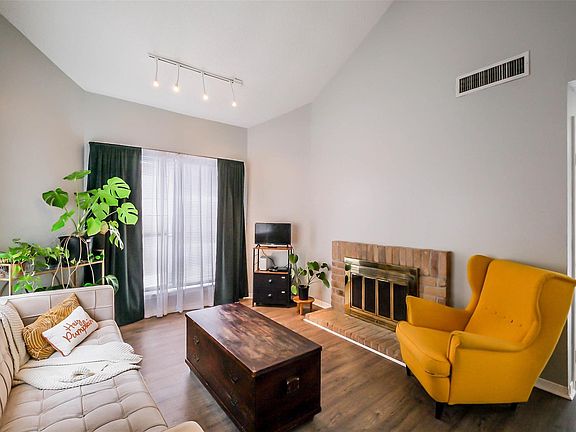 This is the perfect condo: Economical & central location. Gated Bright & roomy 1 bedroom with 1 FULL bathroom condo in quiet gated community. This unique & well maintained 1 story corner unit on 2nd Floor has plenty of windows, sliding doors in front balcony & center balcony, providing an abundance of natural lighting. Enjoy your walk-in closet in bedroom. Living made easy with stackable washer/dryer (INCLUDED) in utiity room inside of home, wood burning covered interior fireplace, private elongated balcony with sliding door, 1 covered parking space. Kitchen w/ laminate countertops, NO carpet & Conveniently located by the 24 hour card access/remote entry gate station, Washer and dryer stackable and refridgerator are INCLUDED. The well-established complex offers its complex pool, clubhouse, well-maintained grounds, Has a covered parking assigned. Minutes away from the Energy Corridor, Beltway 8, 1-10, City Center, Memorial City, & Grocery Stores.
