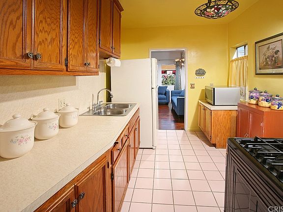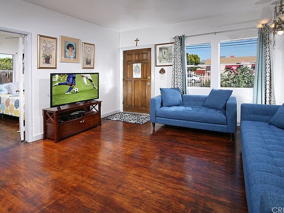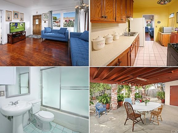This great home is located in one of Pacoimas nicest neighborhoods and every aspect of it exudes true Pride-Of-Ownership. Its decorative white wrought iron fencing, green lawn, colorful flower beds, fragrant roses and covered front porch enhance its eye-catching curb appeal. The paneled front door with etched glass insert sweeps open to a bright and flowing floor plan with approximately 1,296 sq. ft. of immaculate living space. The spacious living room is bathed in natural light from a multitude of windows and is further accented by smooth ceilings and gleaming original hardwood floors. The cook in the family is going to truly appreciate the kitchen with its large picture window, decorative lighting, rich wood-grained cabinets that reach the ceiling, ample counter space with full back-splash, durable dual basin stainless steel sink and easy care tiled floors. The dining room with its drop down lighting and tiled floors fittingly adjoins the kitchen, making it easy to serve and entertain your guests simultaneously. The master bedroom is drenched in natural light and is enriched with a lighted ceiling fan, ample closet space and modern flooring. The main bathroom offers a pedestal sink, framed dressing mirror, linen/sundries storage, glass enclosed tiled tub/shower and easy care tiled floors. The low maintenance private backyard will be a favorite entertainment destination with its large covered patio, open patio, mature fruit trees and 2 handy garden sheds.