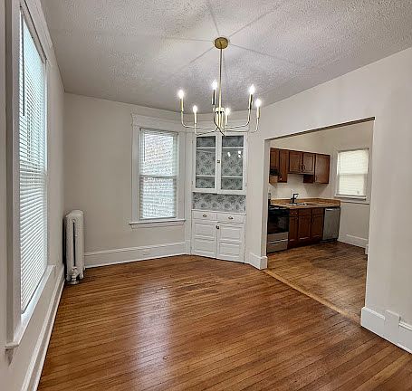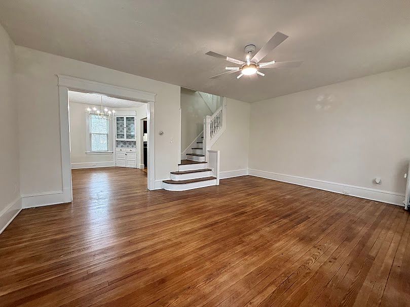 Inside, the home showcases fully refinished original knotted maple hardwood floors that flow gracefully throughout, highlighting the residence's historic craftsmanship. Thoughtfully selected elegant lighting enhances each space, including a striking chandelier in the formal dining room that adds an elevated touch to everyday living and entertaining.