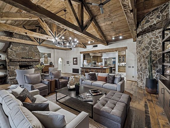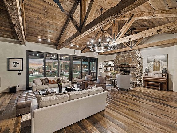 An Exquisite single level home for the discriminating buyers seeking exceptional quality of construction, unsurpassed architectural details and only the finest finishes. The Kitchen and bathrooms were remodeled, however a 100+ year old CO Barn was disassembled and masterfully repurposed for the wood beam ceilings, the distressed reclaimed hardwood floors, flawless 2nd bedroom reclaimed wood walls. This, along with the stamped copper ceiling in the office, the stone accents in the alcove, the massive rock fireplace, the real antler chandeliers and remarkable one of kind Cave Den Bar give this home an 1800's AZ authenticity & uniqueness that cannot be duplicated. It is an entertainer's dream home with every amenity to spoil family & friends. The stunning super private backyard has breathtaking mountain views everywhere, large heated pool, BBQ, fireplace, firepit and multiple lounging & forever green grass areas for pets and children to romp. Your guests will enjoy the generous separate casita with Views, Euro-Kitchen, walk-in closet & washer/dryer. The current Bunk Bedroom has a magical star-lite ceiling, sleeps eight, terrific for sleep-overs & grandchildren. It can be converted back to a star-lite theater. The current owner has upgraded and/or replaced most everything mechanical, including the roof in 2023 with 10 Year Warranty, HVAC's in 2023, Tank-less water heaters in 2022, all new Crestron System 2024-2025, New Jandy 400 BTU Pool Heater & Water Feature pump in 2024 & MUCH more making this an all but new functioning home. An extensive list of improvements will be provided. Two Plus Acre parcel leaves plenty of room to expand garages &/Or home. This One-Off Authentic Hacienda is a work of art like no other. In Scottsdale's gated Ladera Vista community. This home checks every box. Bring your Cowboy Boots!