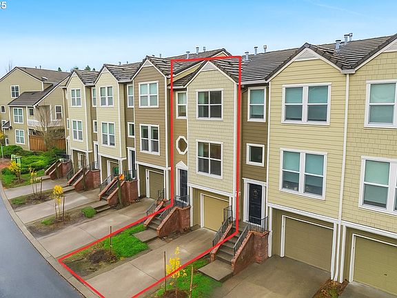 Nestled in a serene greenbelt setting, this elegant townhome offers the perfect blend of comfort, quality and style. With an ideal layout that seamlessly flows across three levels, the home is designed to take full advantage of its beautiful surroundings, including expansive views of greenspace and sunsets. The main floor is an entertainer's dream, showcasing extensive engineered maple hardwood floors throughout. The bright and airy living room offers a balcony overlooking the greenspace, while the gas fireplace adds warmth and ambiance. High ceilings and built-in bookcases add character and functionality to the space. The spacious kitchen boasts hardwood floors, modern appliances, including a gas range and freestanding refrigerator, tile counters and backsplash, light wood cabinetry, and flows seamlessly into a formal dining area. The upper-level primary bedroom is a true retreat, featuring hardwood floors, a walk-in closet, full bath, and stunning sunset views. The second bedroom upstairs is thoughtfully designed with hardwood floors, its own walk-in closet and easy access to the hall bath, providing privacy and convenience for family or guests. The versatile lower level is a private 3rd bedroom, office or family room and includes hardwood floors, a full bath, large walk-in closet, and sliding door to a private patio, perfect for relaxing or entertaining while enjoying the peaceful view of the greenspace. Whether you need a third bedroom, home office, or cozy family room, this space offers endless possibilities. Upgrades and updates include high quality wool carpeting on stairs, new engineered maple hardwoods throughout every level, new trim, and fresh paint, ensuring that every detail of this home feels both timeless and move-in ready. Location! Forest Heights offers picturesque walking trails, a park with a lake, a merchant center with coffee shop, pizza, and other services. All this while minutes to downtown, hospitals, Nike and Intel! [Home Energy Score = 9. HES Report at https://rpt.greenbuildingregistry.com/hes/OR10241753]
