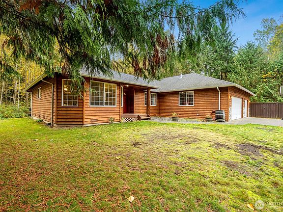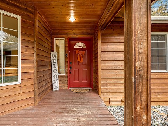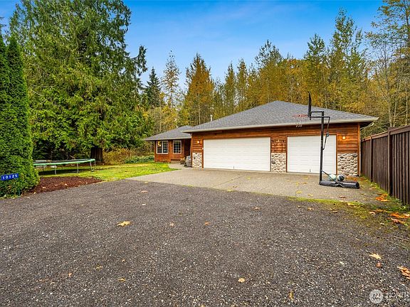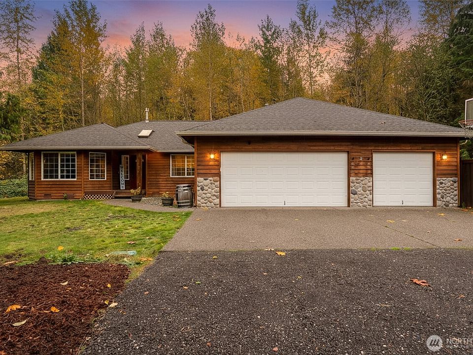Peaceful country living on nearly 5 private acres with no HOA, just minutes from town. This single-level rambler features an open layout with vaulted ceilings, a river-rock fireplace, and large windows overlooking the private, wooded setting. The spacious primary suite includes dual walk-in closets and a 5-piece bath. Enjoy a large entertaining deck, RV parking, dog run, 3-car garage, and a flat usable area, ideal for a future shop, animals, or more. A rare blend of space and convenience.