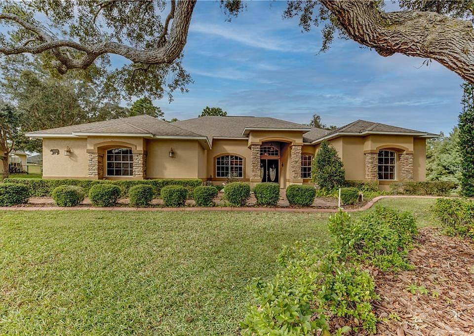 Nestled on .93 of an acre in the quiet country setting of Woodland Waters sits this executive custom built home Featuring 4 bedrooms, 3 baths and 3 car garage. This exquisite home boasts beautiful as you enter the double doors entering into a formal living room with vaulted tray ceilings and dining room with brick columns and wood tile . The Gourmet kitchen features corian counters, wood cabinetry, an island , gas stove all overlooking the spacious family room with natural light and a brick gas fireplace for the occasional chilly night. The Master has two walk in closets and the master bath has walk in (snail) shower and plenty of space to get ready . Large Bonus room with closets that could be another master suite if needed. There is also an office with built ins for those who work from home. Enjoy Florida Living and relax on the large screened Patio for all your entertaining needs in your beautiful saltwater pool with jacuzzi area and waterfall feature. Pool and Jacuzzi can be heated by gas or electric . AC 2016 , New Pool Pump, Screens in the enclosure replaced.