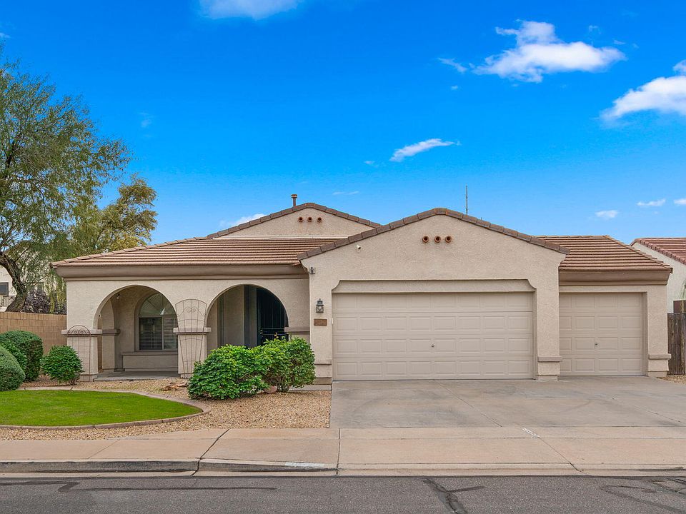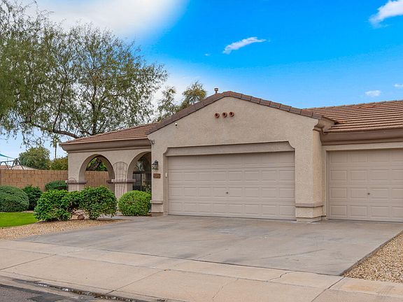 Beautifully upgraded single level home in the highly desirable Santa Rita Ranch Community. Perfectly situated on a premium lot next to a beautiful park. This home provides 1786 sq ft, an open split floorplan, 3 bedrooms, 2 baths, 9ft ceilings and upgrades throughout. A beautiful kitchen with Granite countertops, SS appliance package, (fridge included), cozy eating area, breakfast bar opening to the formal dining & large family room with accent wall and bar nook. Double doors take you into the spacious Main suite with en-suite boasting double sinks, walk-in shower, garden tub and spacious walk-in closet. Split floorplan offers two more bedrooms and a full bath. A nice sized laundry room with storage area and front load pedestal washer /dryer included. Enjoy the private backyard featuring a covered patio, cool grassy area, freshly landscaped, dog run and double gate. Plus a 3 car garage with epoxy coated flooring, 220 outlet for electric car or power tools, new water heater, water softener and an access door to the backyard. Amazing location easy access to restaurants, shopping, walking and biking trails, parks, airport and Loop 202 to take you anywhere. Don't miss this ONE!