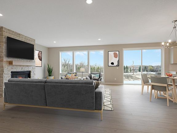 BRAND NEW - Move in NOW! Walkout two-story home featuring a beautiful, open-concept kitchen/living/dining room. The windows in the home are showstopping with tons of natural light! This warm color palate will make you feel right a home along with TWO fireplaces to cozy up to. This is the perfect 5 bedroom home for your family and an ideal location in Maple Grove!