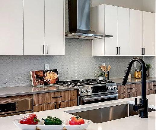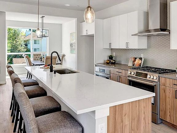 New construction and first-time rental. Townhome with the functionality and space of a single-family dwelling - including a spacious covered deck, large 15' deep backyard, 2-car tandem garage + driveway parking! This warm and bright 3 bed, 2.5 bath residence with ~1750 sqft living space boast a sleek chef's kitchen with large center island and high-end brand-new Bosch appliances, open concept great room with electric fireplace, and inviting dining room with dry bar ideal for entertaining. Quartz counters, LVP floors, heat pump & A/C via mini splits, CAT-6, USB outlets + more! Less than an hour to Seattle & the Eastside w/easy access to rout 9 it's close to Lake