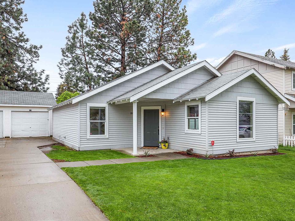Beautifully maintained Central Valley 1043 sq ft one level 3 bed 1 bath home! Granite counters, updated bathroom, new light fixtures, stainless dishwasher & newer a/c unit and hot water tank. Stainless appliances and washer/dryer to stay with the home. This spacious open floor plan is perfect for entertaining with a slider access to the side yard and an additional door to the private fenced back yard w/ sprinkler system & one car garage. Don't miss this adorable home!