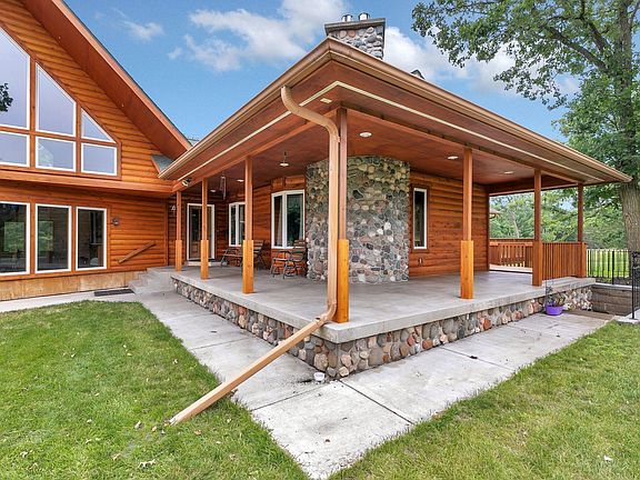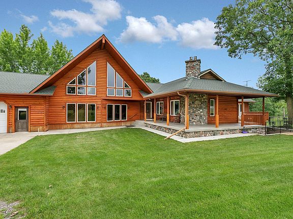 This home is sure to please with almost 4000 sq feet. Offering, 4 bedrooms, (3 on the main level), 4 bathrooms. Owners suite with walk in closet and 3/4 private bathroom, main floor full bathroom, main floor laundry, hardwood floors, sunken living room with stone gas fireplace. There is an absolute must see main level great room with slate floors, in floor heat, gas stone fireplace, towering ceilings with craftsman style beams, floor to ceiling glass shows off the hot tub room, bar loft above and adjoining 3/4 bathroom walks through to the attached 28x40 garage also with in floor heat. The fully finished lower level offers TONS of storage, 2 safe rooms, stone gas fireplace and walk out to a new concrete patio. Outside you will find an amazing wrap around porch, tasteful retaining walls a 30x56 heated shop with 9x14 door and private man cave. Additional 38x40 pole shed with cement, power 10x12 doors. All tucked back on 9.24 acres. New roof July 2022.
