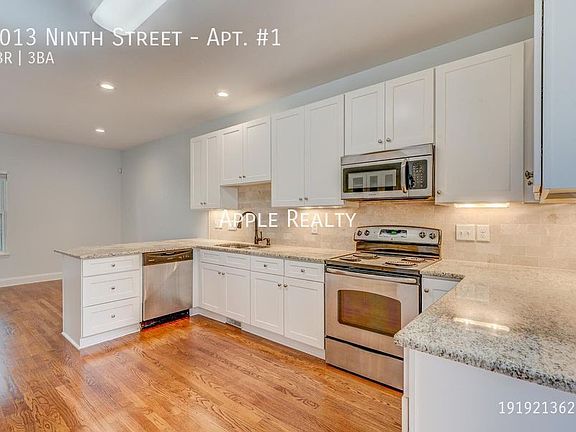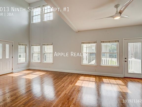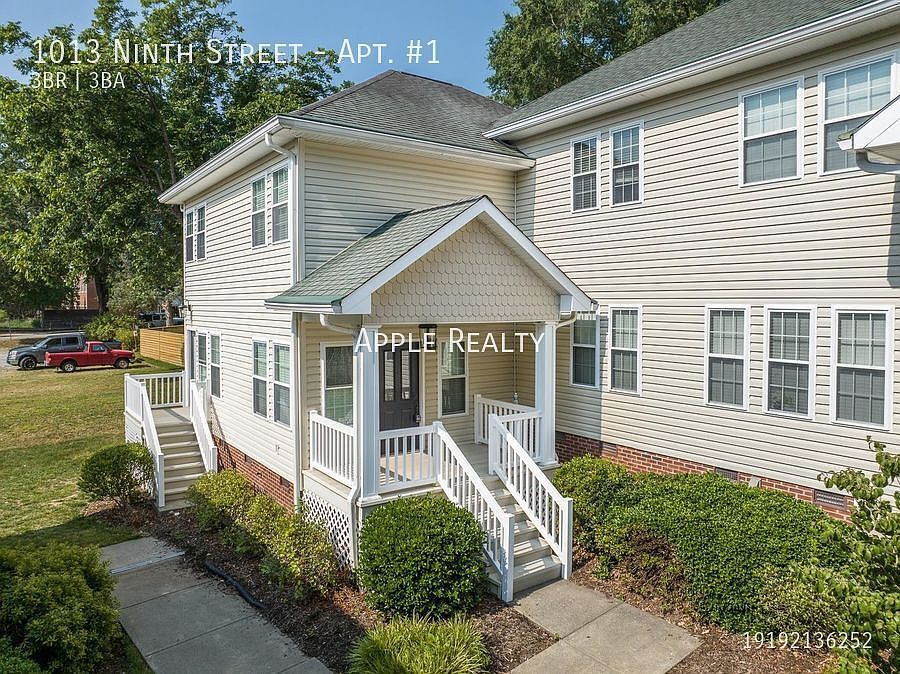 This 3BR, 3BA, 2 story town home in Ninth St. Commons features an open floor plan with cathedral ceilings in the great room. Kitchen details: Granite countertops, natural stone backsplash, white shaker style wood cabinets with easy glide drawers, butler's pantry, countertop seating as well as separate dining area, under cabinet lighting, stainless steel appliances including stove, microwave, refrigerator, dishwasher, washer & dryer. Spacious Master bedroom with private bathroom. Natural wood flooring throughout unit. Bathrooms: Brushed nickel fixtures, granite countertops and tile floors in showers and or/tub surround. Central heat and air - all electric, off-street parking. Convenient to: Duke, Ninth St dining & shopping, VA Hospital, and everything Downtown Durham has to offer!