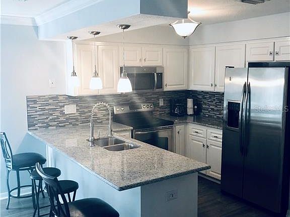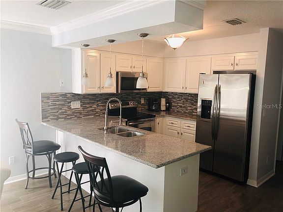 3 MONTH RENTAL MINIMUM. This immaculately furnished 2 bedroom, 2 bath condominium with an assigned parking space is located in the beautiful town of Apollo Beach, Florida. There is easy care tile throughout with new carpet in both bedrooms. The living room has 1 sofa, 1 chair, and a 50" flat screen TV. The master bedroom has a queen size bed, walk in closet, and a step in shower. The second bedroom has 2 twin size beds and a large wall to wall closet. The hall bath has a tub, dark cabinetry and a beautiful ceramic sink. The kitchen is nicely equipped with granite counter tops with an inset sink, stainless steel appliances; dishwasher, ceramic top stove, built in microwave, side by side refrigerator, closet pantry and breakfast bar. A washer and dryer are in a separate room off the kitchen. Central heat and air as well as ceiling fans in the living room and both bedrooms will keep you comfortable all year round. Enjoy your morning coffee and newspaper in the front or side balcony. Conveniently located in Apollo Beach/Sun City Center/Riverview/Ruskin area. Near I-75, 1-mile South of Big Bend Road and Hwy 301. Near shopping, St. Joseph's South Hospital, New YMCA and major grocery stores. Only minutes to the open water of Tampa Bay. COMPLETELY RENOVATED! Water, digital cable TV, high speed internet and the first $100 per month of electricity are included in the rent. 14.5% tax will be added to all rentals less than 6 months. No pets and no smoking.