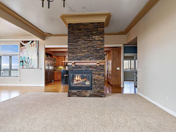 Stately and contemporary! This home is waiting just for you to enjoy the lovely, custom interior as well as the beautiful, expansive, mountain and city VIEWS from your southern facing deck. Come home to comfort as you enter the great room with ceiling to floor rock, gas fireplace that opens to the gourmet kitchen as well. The kitchen has granite counters, stainless steel appliances, oversize counter depth refrigerator, dual wall ovens, breakfast bar and nice size pantry. Master bedroom on the main level is generously sized with master bath having custom rock work on bath walls that extend onto the heated floor and into the shower with double heads. The walk-in closet has abundant, hanging rods/shelves. 4th bedroom/office with French doors is also on the main level. Downstairs are 2 more bedrooms, laundry and a family room for relaxing. Backyard fire pit for summer fun or winter warmth! 3 car garage with locking extra room. New HVAC, garage door and some interior/exterior paint