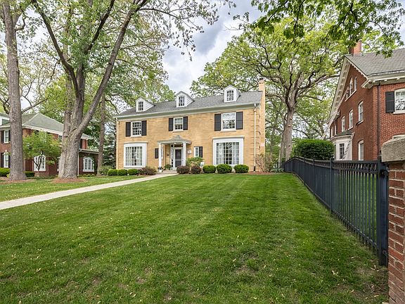 Charming Brick Colonial Revival in Elgin's Historic Gold Coast Located in Elgin's highly desirable Gold Coast neighborhood, this meticulously maintained 1951 Colonial Revival home is a Mid-Century gem in the heart of the Spring-Douglas Historic District. Blending timeless architecture with thoughtful modern updates, this home exudes character, comfort, and elegance throughout. Inside, you'll find three generously sized bedrooms, two full bathrooms, and two half-baths. The spacious primary suite includes multiple closets, an attached full bath, and a charming sitting or dressing room with custom built-in cabinetry. A Dutch door leads to a private balcony overlooking the beautifully landscaped backyard. In 2017, the kitchen was completely redesigned with commercial-grade Bertazzoni appliances and custom Fieldstone cabinetry, creating a sleek and functional space that retains a Mid-Century aesthetic. French doors from both the kitchen and living room open into the sunroom-a relaxing retreat featuring new Senex windows with retractable screens, a beadboard ceiling, and updated vinyl flooring suitable for outdoor use. The living room, ideal for entertaining or unwinding, features a sculpted Mid-Century carpet and a wood-burning fireplace. A dedicated home office, positioned between the kitchen and living room, offers a quiet space for work or reading. Throughout the house, beautifully refinished original hardwood floors enhance the classic ambiance. The finished basement includes a cozy family room with an all brick fireplace, a half-bath, a large laundry room, and abundant storage. It also offers a private entrance from the exterior. A walk-up attic provides additional storage space. Outside, the professionally landscaped yard is a private sanctuary shaded by 150-year-old oak and maple trees. A large stamped-concrete patio features a fire pit, built-in barbecue station, ambient lighting, and a shade-providing wind sail-ideal for outdoor gatherings. The custom-built "She-Shed" includes floor-to-ceiling cabinets, offering versatile space for hobbies or additional storage. A brick oversized two-car garage includes a 220-volt outlet for EV charging. The entire backyard is enclosed with a combination of wood privacy and black aluminum fencing. The roof and gutters were replaced just fifteen years ago, adding peace of mind to this already move-in-ready home. The location is unbeatable-just blocks from the Fox River, bike trail, downtown Elgin, the Metra station, award-winning Gail Borden Library, the city's recreation center, and a wide variety of shops and restaurants. This is more than just a house-it's an elegant and welcoming home in one of Elgin's most treasured historic neighborhoods. Whether you're entertaining guests or enjoying a quiet evening at home, this residence offers the perfect blend of style, function, and community.