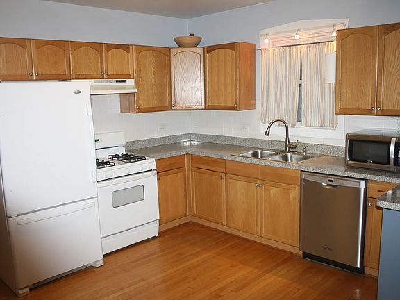 Charming 3+1 bdrm, 1.5 bath whole house for rent in a family-friendly and quiet neighborhood. Extremely convenient location close to 290 and the Blue Line. Huge eat-in kitchen with breakfast bar and pantry. Large NEW windows let in plenty of natural light in all rooms. Spacious fenced-in back yard with patio and lights, perfect for entertaining, kids, and pets. Primary bedroom has a nice walk-in closet with drawers and shelves. NEW fully finished basement with family room and TV outlet, laundry with NEW washing machine and dryer, an extra-large bedroom with walk-in closet, finished storage room, and half bath. Basement has full waterproofing. Plenty of extra storage in the walk-up attic. Security system with exterior cameras included. Detached 2.5 car garage has an over-sized door suitable for extra large cars and trucks, plus plenty of space for bikes, gardening equipment and hobbies.