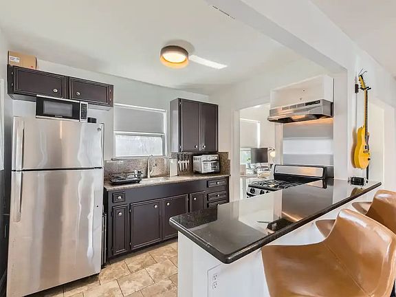Barbecue, and Juan in a Million. The kitchen includes granite countertops and opens to the living area for easy