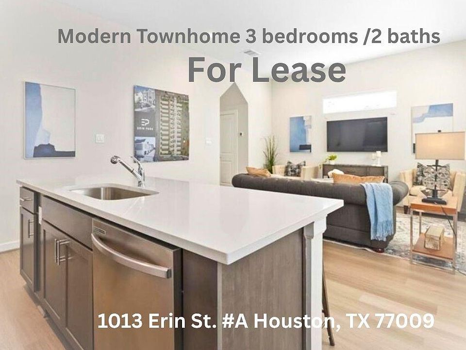 Welcome to the modern living! Newly built 3/2 Townhome in Erin Park, a gated community minutes from Downtown and Heights. Corner 2 story unit with split plan and 1st floor living. 2 car garage with Emporia EV Charger and 4 prong outlet installed. Kitchen features Stainless Steel appliances and Quartz island. Included are Refrigerator, Washer/Dryer, Upgraded Ceiling Fans. NEW construction, never lived in. End unit with private backyard and fenced dog park. Prewired for High speed Fiber ATT internet. Very central location. Minutes away from Downtown, Heights, Midtown, and EaDo. Easy access to All major highways of Houston for fast access to Airports and Medical Center. Only 3 minutes away from the local MD Andersen YMCA gym. Close to Irvington park and White Oak Bayou trails. Special welcome to tenants with immediate move-in!